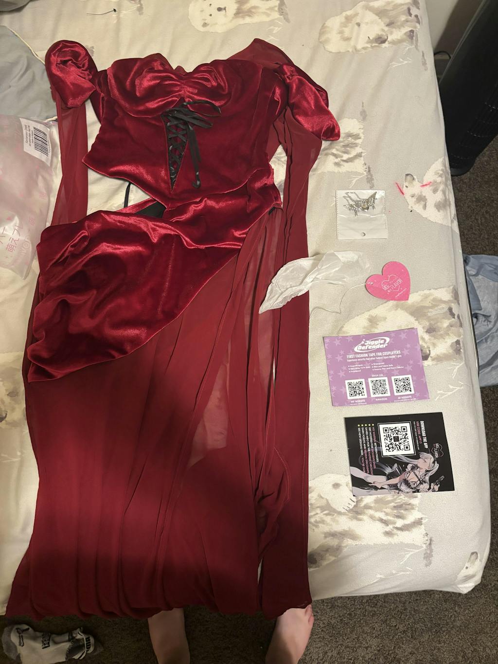 Paired with matching lace-up panties and long, elegant gloves, this outfit exudes a fierce yet alluring vibe.