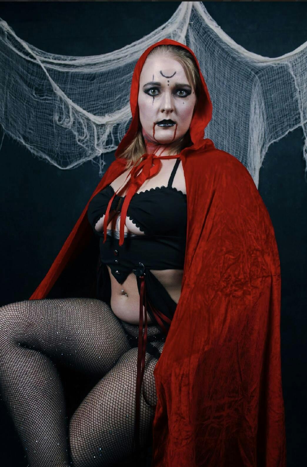 Step into the night with the Moonlit Ritual Witch Lingerie. This soft black set features adjustable underwear, delicate moon pendants draped with red ribbons, and long mesh gloves for a seductive, mystical vibe.